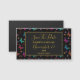 Eye-catching save the date wedding reminder in black and gold. Designed with an elegant pattern with a graphic illustration of fluttering butterflies in many bright colours, contrasting very nicely on the black background. Whimsical florals, sprigs and leaves add a bit of charm. A black frame with a gold coloured border layered over top with your personalized text inside. Customize with the bride and grooms name and their wedding location and date.