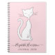 Cute and girly pink notebook featuring a chic white cat with a pink nose and collar and your name in a stylish trendy script with swashes. Add a title or leave blank.