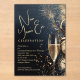 Stylish New Year's Eve ACRYLIC party invitations feature a champagne glass, clocks, confetti and fireworks on a midnight blue background with your party details in chic gold lettering. CHOOSE the weight of your invitations when ordering.