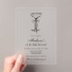 Designed for a timeless and sophisticated presentation, this acrylic birthday invitation combines a hand-drawn black champagne coupe and coquette-inspired bow on crystal-clear acrylic. The clean, background-free design delivers an elegant floating look, making it perfect for upscale birthday parties and modern celebrations. Fully editable text allows for easy customization.