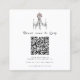 This elegant wedding enclosure card features a charming hand-drawn illustration of a vintage chandelier adorned with a delicate blush pink bow. The soft, sketchy style evokes a sense of romanticism and sophistication, perfect for a formal or semi-formal celebration. The design includes space for a QR code and essential details, making it easy for guests to RSVP and find more information about your special day. Its minimalist yet detailed aesthetic ensures it will beautifully complement any wedding theme.