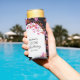 Elegant cherry blossom flower and white arch frame with vibrant typography on a black background birthday can cooler.