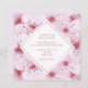 These gorgeous wedding invitations feature chic pink watercolor cherry blossom flowers all across the background. In the centre there is a diamond with a faux silver foil border, and all of your wedding invitation wording inside. The back of the invitation is a soft pinkish colour that matches the flowers.
