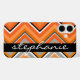 Chic Chevron Pattern Black Grey Orange script Name Case-Mate iPhone Case