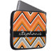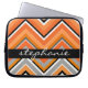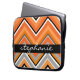 Chic Chevron Pattern Black Grey Orange with Name Laptop Sleeve