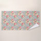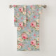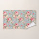 Cette serviette de bain fleurie dispose d'une belle motif d'inspiration chic et shabby de roses de cottage et de fleurs dans des tons doux de rose, vert et crème sur le bleu.