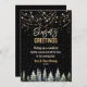 Chic black Christmas trees faux glitter holiday lights Christmas new year greeting card. Shimmering cute glittery Christmas card. Perfect for sending out to family or friends for the holiday season. To make it extra special it is embellished with beautiful faux glitter. This design can also be transferred onto any product on zazzle. You can personalize it with your own text and information.