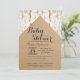Chic and classy image of white lace with gold leaf outline & brown recycled paper background, Baby Shower invitations. Very classic and sophisticated design for the mom to be. Personalize with your own message and monogram on the back. All photo print design.