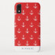 Chic coastal red and white anchor pattern, personalized with name, iPhone case.