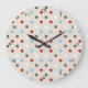 Chic red, blue, white and grey polka dots pattern on a beige / tan background.