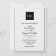 Stylish all seasons wedding invitation done in black and white, with a watercolor paper texture look. Bride and groom's white monograms decorate a black square, at the top of the invitation and a thin black frame surrounds the front side. The back of the invitation is done in a black on black floral damask pattern. Personalize all the text fields for your special day. Matching wedding products are available.