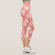 Chic Coral and White Floral Customizable Pattern Capri Leggings