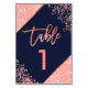 Chic coral typography on customizable navy blue coral glitter colour block, and faux coral foil geometric stripes chic table number wedding , perfect for elegant, beach wedding,