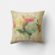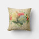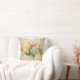 Chic Coral Rose Blue Hydrangea Floral Gold Damask Throw Pillow