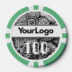 Black and white tattoo style line art compliments the clean and crisp logo placement and poker chip value. Easily upload your business logo and set the denomination for each poker chip rim colour.