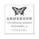 Enhance the impression your correspondence gives with this custom self-inking rubber stamp featuring a beautifully detailed butterfly design. Perfect for adding a personal and elegant touch to your letters, invitations, and packages, this stamp showcases your family name and address in a sophisticated serif font. The high-quality self-inking mechanism ensures a crisp and clean impression with every use, making it ideal for busy households. This stylish and functional stamp is perfect for weddings, housewarming gifts, or everyday use. Order now to add a touch of nature-inspired elegance to all your mailings.