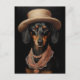 Chic Dachshund With Cream Hat Postcard