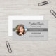 Carte de visite avec votre propre photo encadrée par un simple design gris élégant avec un motif damassé. Idéal pour un blogueur ou un autre professionnel.