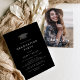 Chic Dark Black Grad Cap Photo Graduation Party Invitation