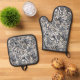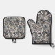 Chic Dark Blue White Grey Paisley Art Pattern Oven Mitt & Pot Holder Set