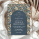 Chic dark pastel blue ivory floral Art Nouveau Invitation