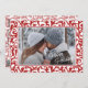 Contemporary classic Christmas holiday season dark red coloured floral damask pattern on a crisp white background. With the option to customize or personalize with a photo and (limited) text of your choice. With room to customize or personalize the text on the front, a family photo, and a customizable season greeting message on the backside of the card. This motif is available on return address labels, wrapping and tissue paper, gift tags, bags and favour boxes, envelope seal stickers, ribbons, and envelopes.