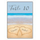 Chic Dusty Blue Beach Wedding 2 Hearts in Sand Table Number