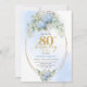 Chic Dusty Blue Floral Gold 80th Birthday Invite