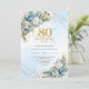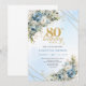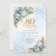 Chic Dusty Blue Floral Gold 80th Birthday Invites