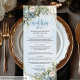Chic Dusty Blue Flowers White Gold Mariage Menu