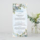 Chic Dusty Blue Flowers White Gold Wedding Menu