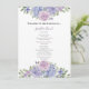 Romantic Chic Dusty Blue Lilac Watercolor Hydrangea Floral Wedding Ceremony Program.