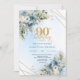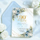 Chic Dusty Blue White Flowers 90th Birthday Invite