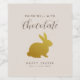 Simple and chic "Pairs well with chocolate" Easter personalized wine label featuring modern typography and a gold bunny silhouette. Minimalist, elegant and stylish. Customize with short greeting and name. Perfect for Easter gift or Easter party favour.