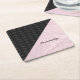 Chic Elegant Black Pink Marble Personalized Square Paper Coaster