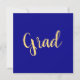 This elegant design features large centred "Grad" text written in festive, elegant warm yellow script. The background is deep, rich royal blue. The text can be personalized.