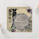 Une robe noire chic sur un fond doré glittery aux fleurs violettes et aux tourbillons décoratifs, associée à un cercle glissant aux fleurs argentées, où vous pourrez customiser votre événement. Élégance élégante de la poule.