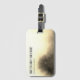 Elegant gold abstract painting on a professional luggage tag with grey typography modern style first name and last name up left followed by profession.