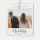 An elegant calligraphy and a modern design for this photo ornament gift. To customize with your favorite couple picture. You can also easily change the color of the font to your liking. Perfect to celebrate your First Christmas as newlyweds or as a couple.