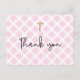 Chic Elegant Pink Faux Gold Cross First communion Postcard