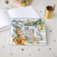 Embrace the joyous spirit of celebration with vibrant swirls of gold interwoven with soft hues of blue, crisp white, and sunny yellow satin. This enchanting design captures the essence of happiness, making it perfect for any special occasion or as a thoughtful, personal gift. Let the playful colours and elegant patterns bring warmth and cheer to your celebrations, turning any moment into a memorable experience for the wedding couple's design to personalize