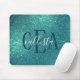 Chic Elegant Teal Blue Sparkly Glitter Monogram Mouse Pad
