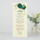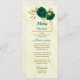 beautiful emerald green flowers and gold leaves elegant wedding menu.