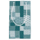 Chic Ethnic Faux Patchwork Pattern, Teal and White Small Gift Bag