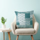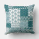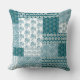 Chic Ethnic Faux Patchwork Pattern, Teal and White Throw Pillow