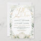 This elegant pumpkin-themed bridal shower invitation features beautiful watercolor greenery leaves in green and gold and elegant typography combining modern clean-cut text and a touch of calligraphy