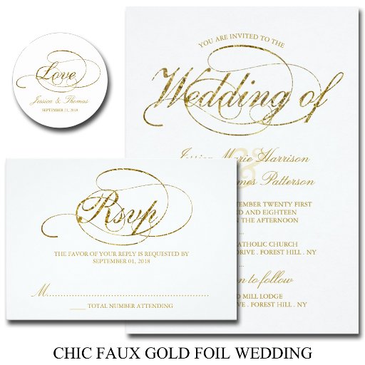 Chic Faux Gold Foil Wedding RSVP Template.
