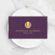 Chic Faux Gold Minimalist Monogram Purple Linen Business Card