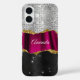 Chic faux silver glitter pink black monogram Case-Mate iPhone case