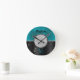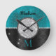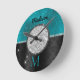 Chic faux Silver Glitter Turquoise Black monogram Round Clock